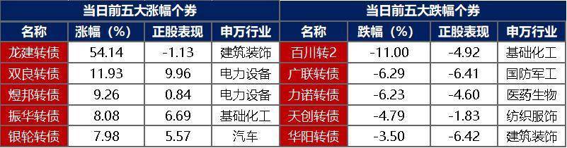 【转债阛阓主要指数集体跟涨】 2月12日,转债阛阓侍从权力阛阓有所上扬,中证转债、上证转债、深证转债永别收涨0.45%、0.57%、0.24%。转债阛阓成交额833.88亿元,较前一往复日放量92.90亿元。转债阛阓个券深广高涨,381支转债中,199支收涨,167支下落,15支柱平。当日高涨个券中,新上市龙建转债涨超54%,双良转债涨超11%;下落个券中,百川转2跌逾11%,广联转债、力诺转债跌逾6%。